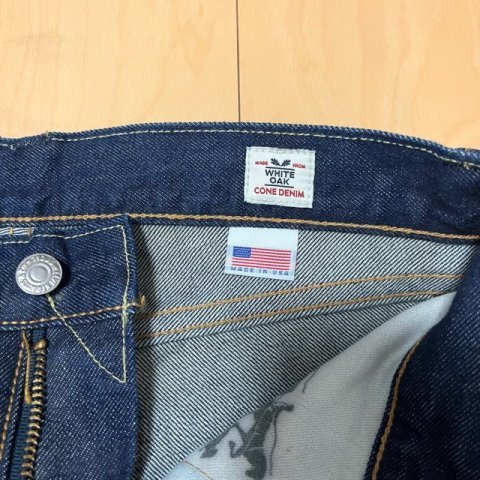 ちなみに同じMade in USAでもホワイトオークじゃない現行の日本製の生地のタイプはもちろんホワイトオークコーンデニムのタグはありませんし、メイドインUSAのタグはMADE IN USAの表記が無く星条旗のみです。