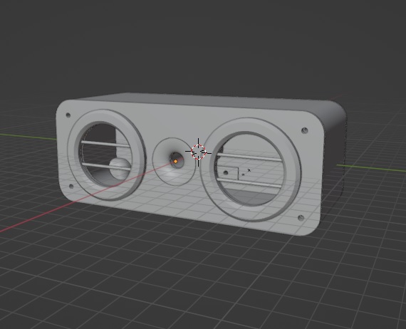 こんな感じでボディ、バックパネル、フロントパネル、グリル、ポートの部品構成にしました。