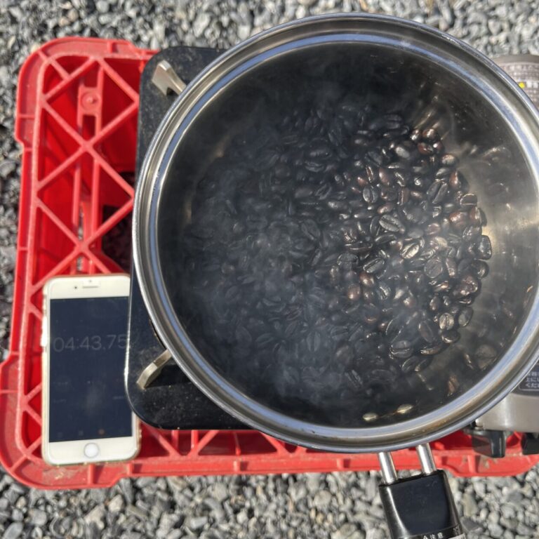 今回は前回の反省を生かして風のない日に蓋ができる鍋で焙煎してみます