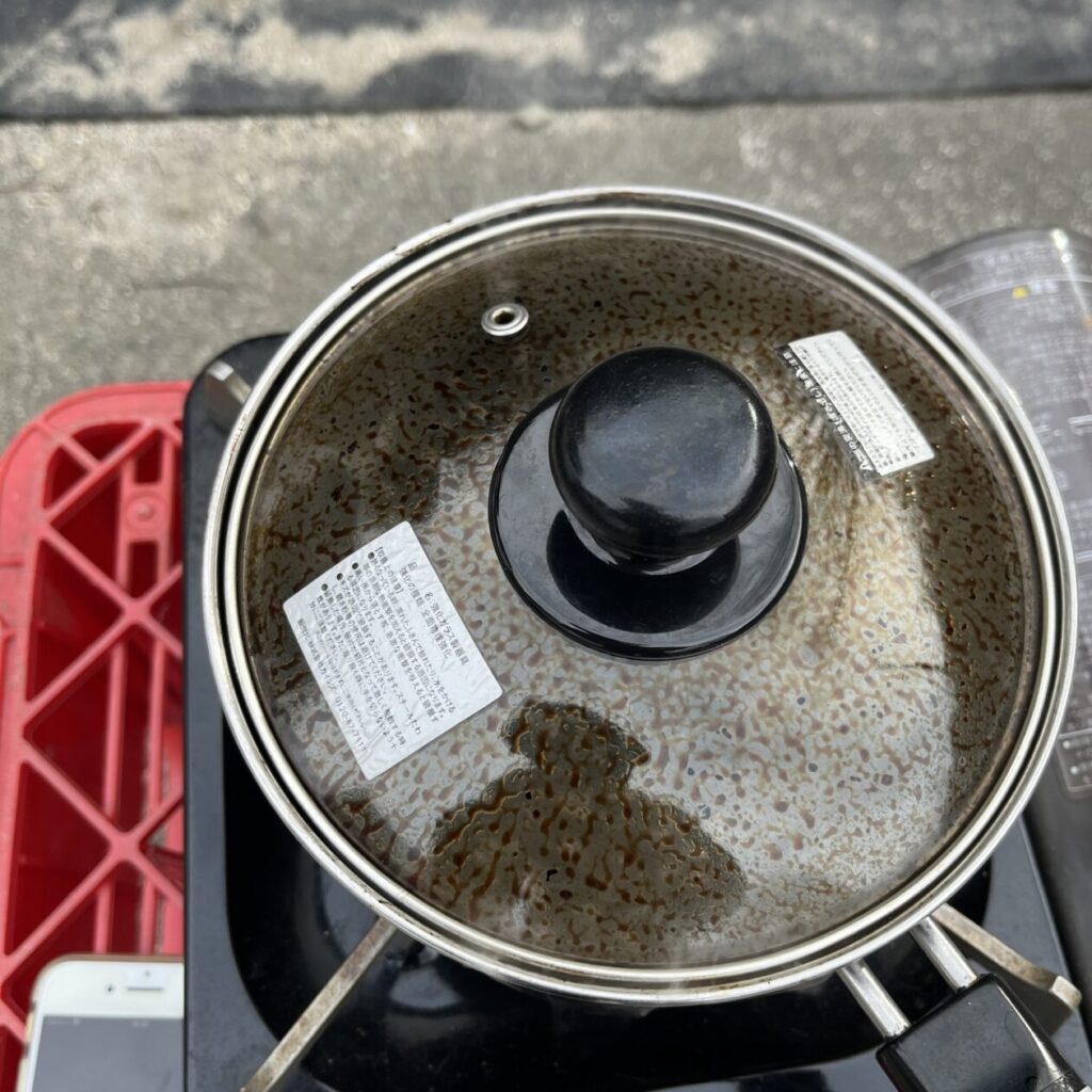 あまりにすごい煙で全然中が見えないのでガラスのフタの意味がありませんw